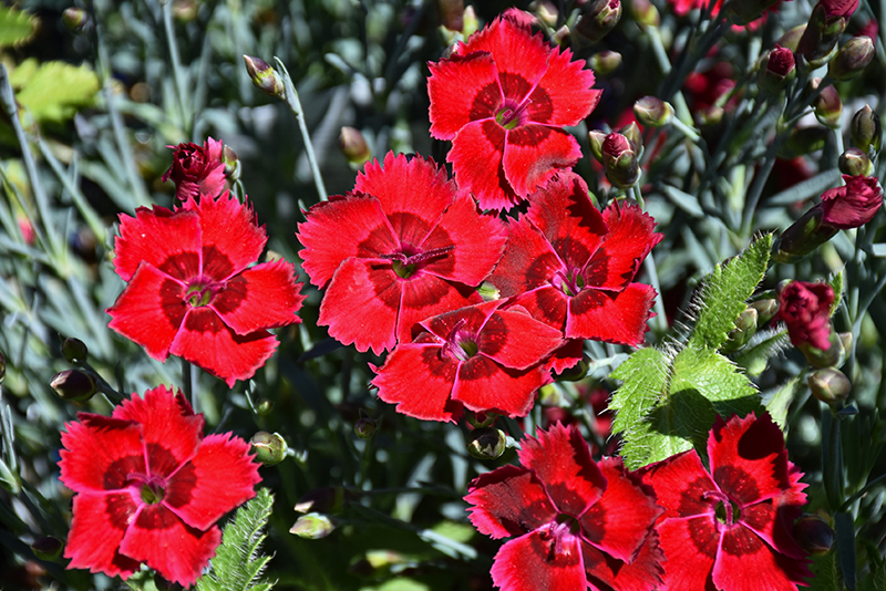 Fire Star Pinks has masses of beautiful fragrant red frilly flowers with crimson centers at the ends of the stems from late spring to mid summer, which are most effective when planted in groupings. The flowers are excellent for cutting. Its attractive narrow leaves remain grayish green in color throughout the year.