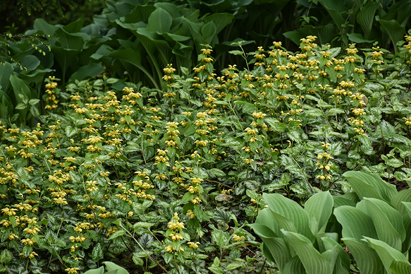 Yellow Archangel features subtle spikes of yellow flowers rising above the foliage from mid spring to early summer. Its attractive serrated narrow leaves remain dark green in color with showy silver variegation throughout the season.