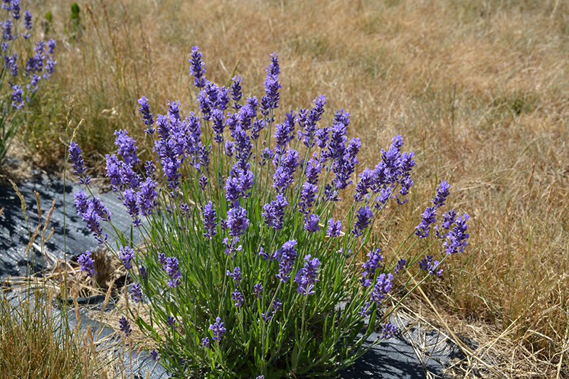 Hidcote Superior Lavender will grow to be about 15 inches tall at maturity, with a spread of 18 inches. It tends to fill out right to the ground and therefore doesn't necessarily require facer plants in front. It grows at a slow rate, and under ideal conditions can be expected to live for approximately 10 years.