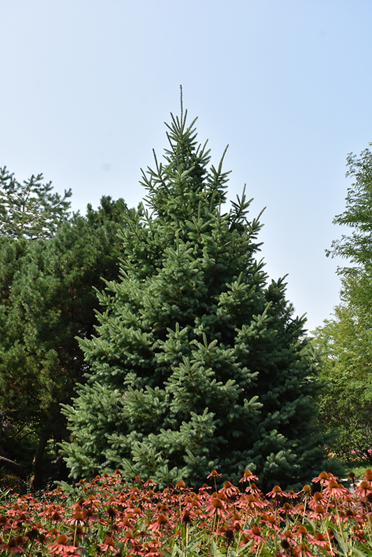 A spire-like evergreen, tall and stately with bluish-green needles, more densely branched and fuller than the species; very tough and adaptable, makes a wonderful vertical accent for the larger home landscape, ideal as a windbreak or in a shelterbelt
