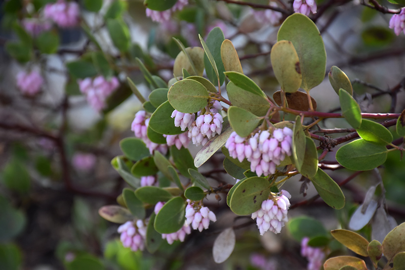 Common Manzanita features dainty nodding white bell-shaped flowers at the ends of the branches from late winter to mid spring. It has forest green evergreen foliage. The glossy oval leaves remain forest green throughout the winter.