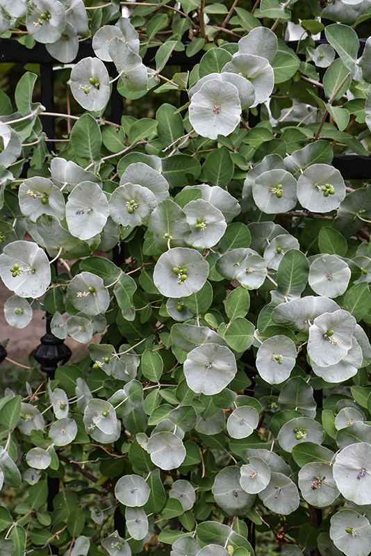 A stunning woody vine featuring showy bright yellow blooms surrounded by silvery white bracts that persist long after the flowers; easy to grow, flowers best in full sun; ideal for covering an arbor, fence or trellis