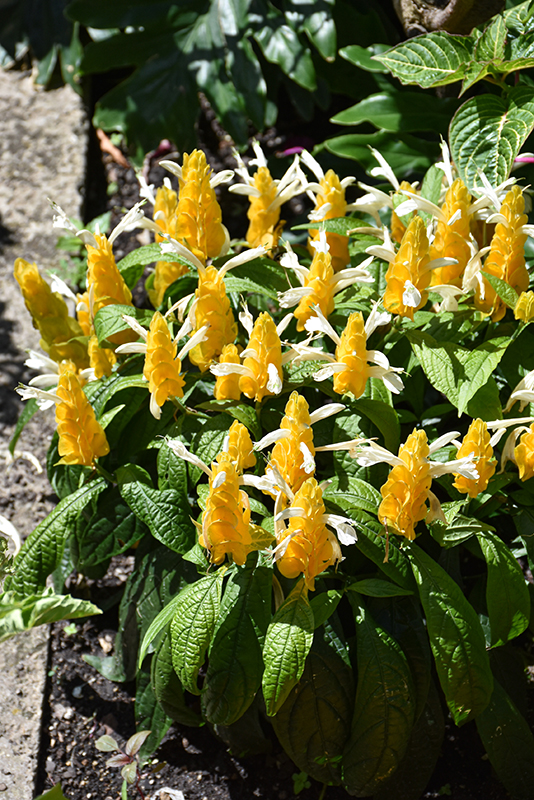 Golden Shrimp Plant will grow to be about 3 feet tall at maturity, with a spread of 3 feet. Its foliage tends to remain dense right to the ground, not requiring facer plants in front. Although it's not a true annual, this fast-growing plant can be expected to behave as an annual in our climate if left outdoors over the winter, usually needing replacement the following year. As such, gardeners should take into consideration that it will perform differently than it would in its native habitat.