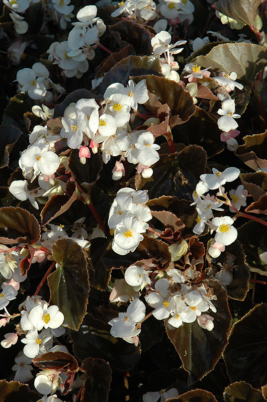 BabyWing® White Bronze Leaf Begonia is a fine choice for the garden, but it is also a good selection for planting in outdoor containers and hanging baskets. It is often used as a 'filler' in the 'spiller-thriller-filler' container combination, providing a mass of flowers and foliage against which the thriller plants stand out. Note that when growing plants in outdoor containers and baskets, they may require more frequent waterings than they would in the yard or garden.