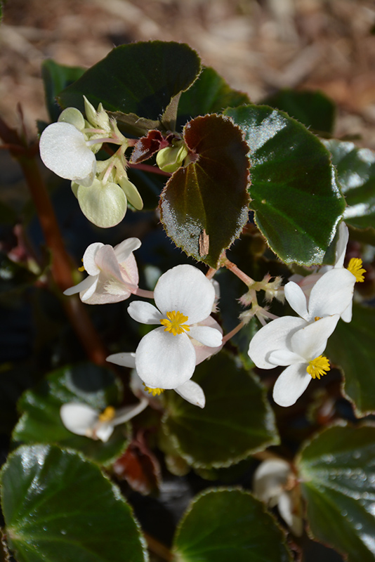 BabyWing® White Bronze Leaf Begonia is an herbaceous annual with a mounded form. Its medium texture blends into the garden, but can always be balanced by a couple of finer or coarser plants for an effective composition.