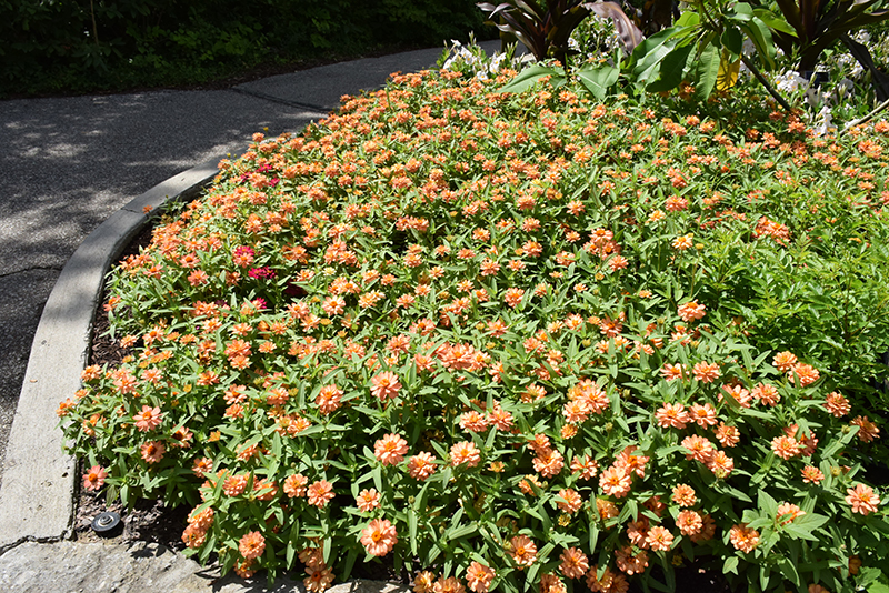 Profusion Double Deep Salmon Zinnia is a fine choice for the garden, but it is also a good selection for planting in outdoor containers and hanging baskets. It is often used as a 'filler' in the 'spiller-thriller-filler' container combination, providing a mass of flowers against which the larger thriller plants stand out. Note that when growing plants in outdoor containers and baskets, they may require more frequent waterings than they would in the yard or garden.