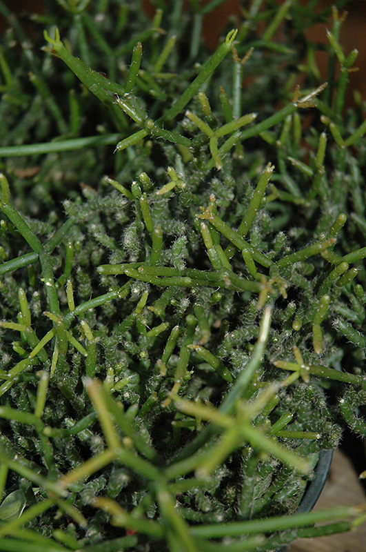 When grown indoors, Hairy Stemmed Rhipsalis can be expected to grow to be about 16 inches tall at maturity, with a spread of 24 inches. It grows at a slow rate, and under ideal conditions can be expected to live for approximately 30 years. This houseplant performs well in both bright or indirect sunlight and strong artificial light, and can therefore be situated in almost any well-lit room or location. This is a unique plant in that it requires extremely dry, well-drained soil, and it will die if left in standing water for any length of time - in fact it will suffer if it is over-watered. The soil should be allowed to go completely dry to the touch an inch or two deep for prolonged periods, and it may only need watering once every few weeks. Be aware that your particular watering schedule may vary depending on its location in the room, the pot size, plant size and other conditions; if in doubt, ask one of our experts in the store for advice. Like most succulents and cacti, it prefers to grow in poor soils and should therefore never be fertilized. It is not particular as to soil type or pH; an average potting soil should work just fine.