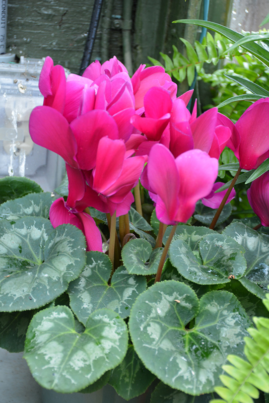 Halios HD Neon Rose Cyclamen features showy lightly-scented nodding hot pink recurved flowers rising above the foliage in mid summer. Its attractive heart-shaped leaves remain bluish-green in color with showy silver variegation throughout the year.