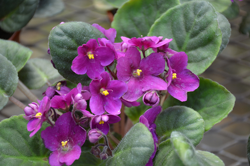 Hybrid Purple African Violet features dainty clusters of purple round flowers with yellow eyes held atop the stems from late winter to late fall. Its tomentose round leaves emerge light green, turning dark green in color throughout the year. The red stems can be quite attractive and add to the plant's interest.