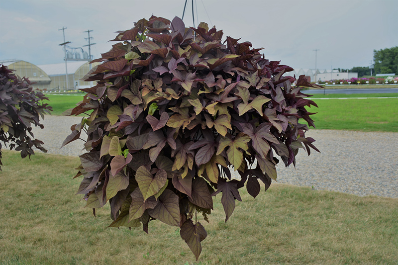 Sweet Caroline Sweetheart Red™ Sweet Potato Vine is a fine choice for the garden, but it is also a good selection for planting in outdoor containers and hanging baskets. Because of its trailing habit of growth, it is ideally suited for use as a 'spiller' in the 'spiller-thriller-filler' container combination; plant it near the edges where it can spill gracefully over the pot. Note that when growing plants in outdoor containers and baskets, they may require more frequent waterings than they would in the yard or garden.
