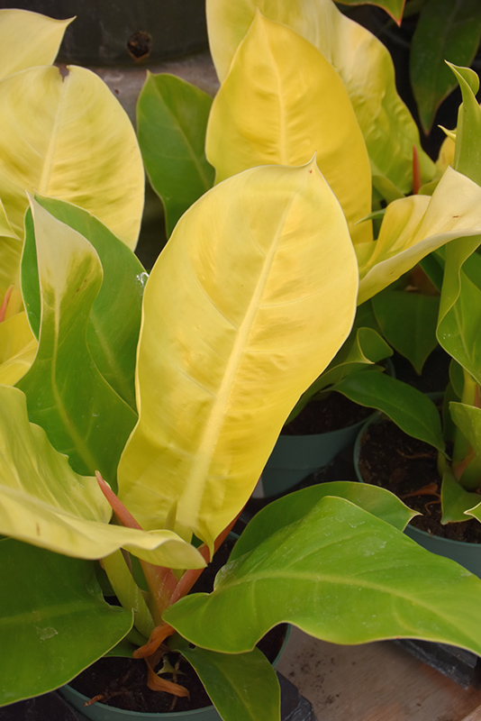 Moonlight Philodendron's attractive large glossy heart-shaped leaves emerge chartreuse, turning lime green in color throughout the year on a plant with an upright spreading habit of growth.