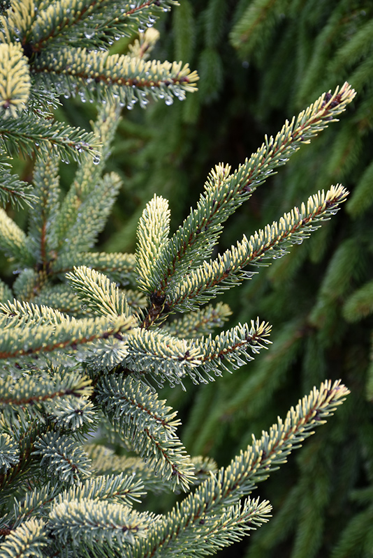 Aureovariegata Black Spruce is a dwarf conifer which is primarily valued in the landscape or garden for its distinctively pyramidal habit of growth. It has attractive gold-variegated bluish-green foliage which emerges steel blue in spring. The tiny needles are highly ornamental and remain bluish-green throughout the winter.