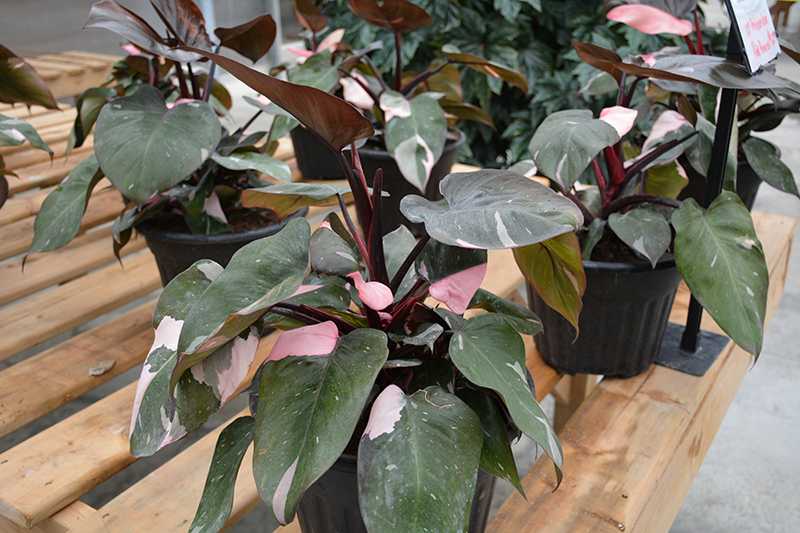 Prismacolor™ Pink Princess Philodendron's attractive large glossy heart-shaped leaves remain dark green in color with showy hot pink variegation and tinges of creamy white throughout the year on a plant with an upright spreading habit of growth. The crimson stems are very effective and add to the plant's interest.