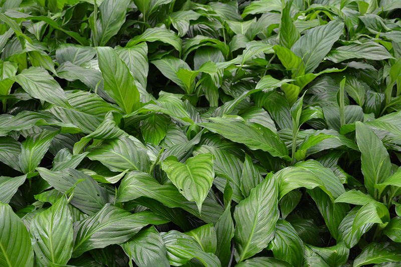 Sweet Pablo Peace Lily features showy spikes of white hooded flowers with creamy white eyes held atop the stems from early spring to early summer. The flowers are excellent for cutting. Its attractive large textured pointy leaves remain dark green in color throughout the year.