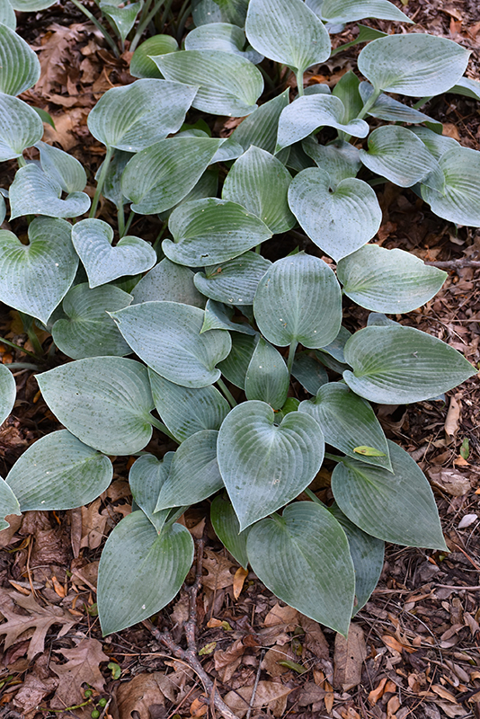 Blue Moon Hosta will grow to be only 6 inches tall at maturity extending to 10 inches tall with the flowers, with a spread of 12 inches. When grown in masses or used as a bedding plant, individual plants should be spaced approximately 10 inches apart. Its foliage tends to remain low and dense right to the ground. It grows at a slow rate, and under ideal conditions can be expected to live for approximately 10 years. As an herbaceous perennial, this plant will usually die back to the crown each winter, and will regrow from the base each spring. Be careful not to disturb the crown in late winter when it may not be readily seen!