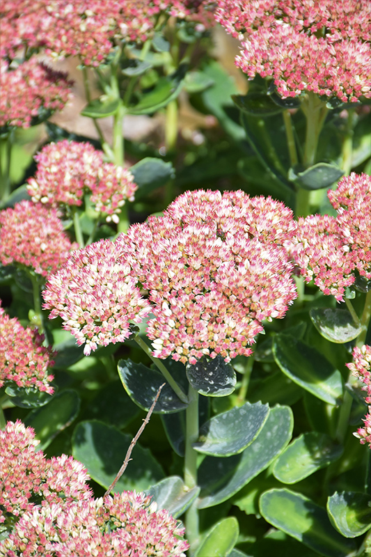 Autumn Delight Stonecrop will grow to be about 14 inches tall at maturity, with a spread of 24 inches. When grown in masses or used as a bedding plant, individual plants should be spaced approximately 18 inches apart. It grows at a fast rate, and under ideal conditions can be expected to live for approximately 15 years. As an herbaceous perennial, this plant will usually die back to the crown each winter, and will regrow from the base each spring. Be careful not to disturb the crown in late winter when it may not be readily seen!